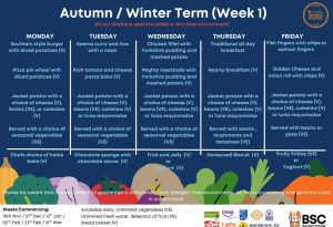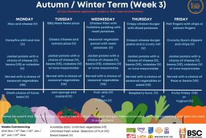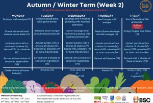 Menus are determined a term ahead and made visible to pupils each morning. Please see the document below for up to date Menus for this term. Meals to celebrate special events are also offered and parents/carers will be notified of these events when they occur throughout the school year.